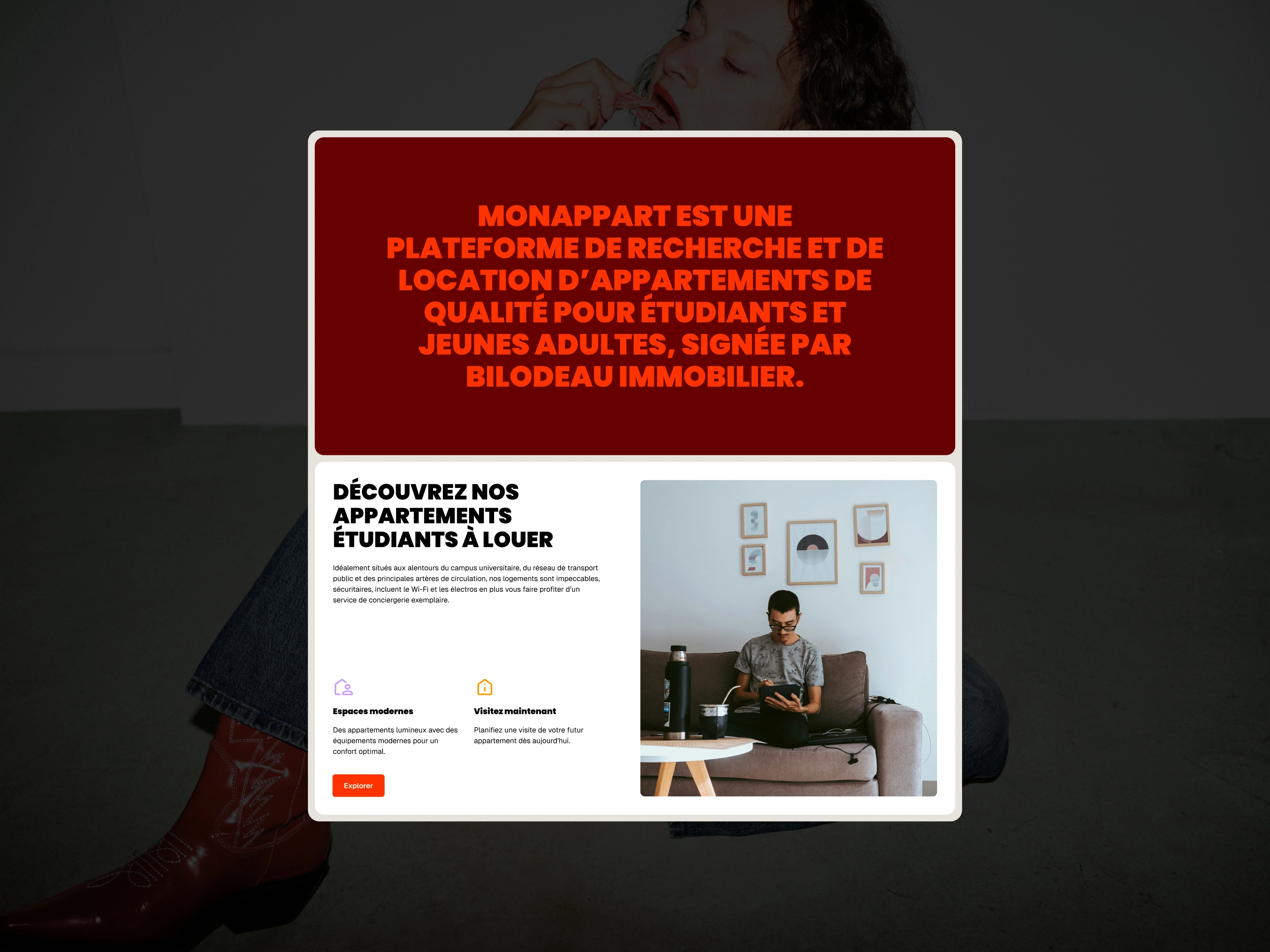 MonAppart is Bilodeau Immobilier’s all-inclusive apartment search and rental platform, built for students and young adults in Québec City. It highlights modern, secure units in convenient locations and reinforces a seamless, turnkey living experience.